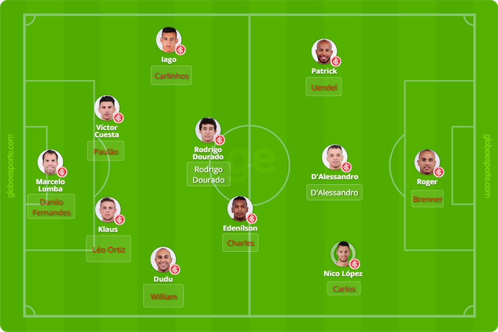 Desta forma, toda a defesa colorada estará alterada um ano depois. Saem Danilo, William, Léo Ortiz, Paulão e Carlinhos; entram Marcelo Lomba, Dudu, Klaus, Cuesta e Iago. Do meio para frente, Edenílson, Patrick, Nico López e Roger ocupam os postos de Charles, Uendel, Carlos e Brenner (compare na imagem acima).