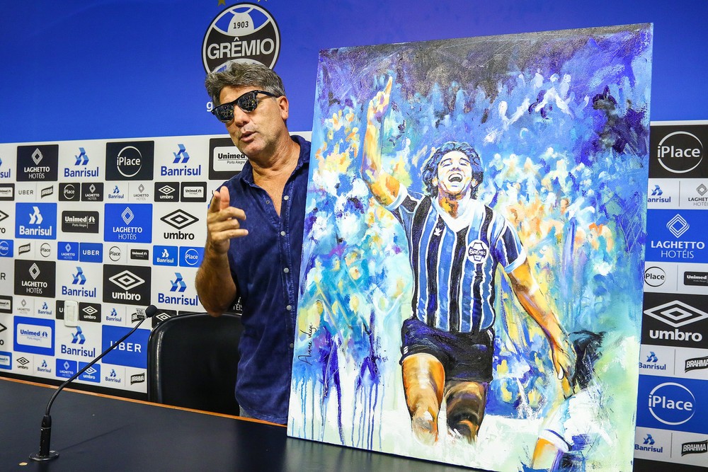 Vale lembrar que quem começou a onda de brincadeiras foi o próprio Luan. Após ganhar homenagem do Grêmio com uma placa por ter sido eleito o Rei da América em 2017, na conquista do Tri da Libetadores, o jogador afirmou que iria mostrar o quadro ao seu treinador. Na última sexta, Renato deu o troco.