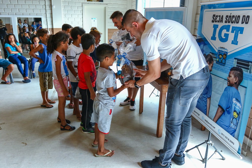 O goleiro Marcelo Grohe e o meio-campista Ramiro fizeram uma ação beneficente com temática de Páscoa. Antes do feriado, a dupla visitou a sede do Instituto Geração Tricolor, que ajuda crianças em situação de vulnerabilidade social residentes nos bairros do entorno da Arena do Grêmio, e distribuiu presentes em nome do elenco do clube.