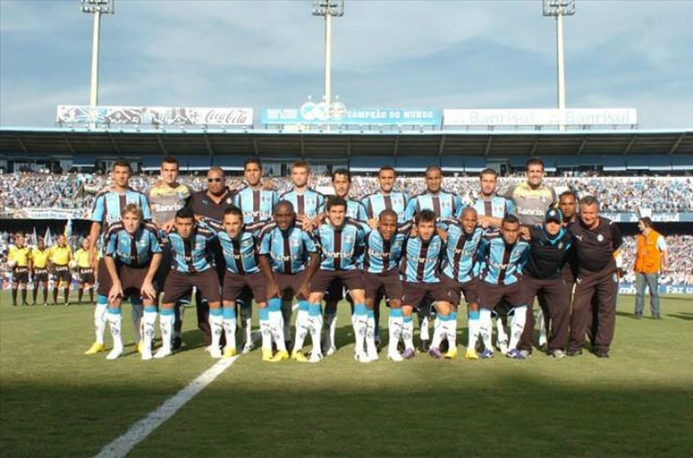 Elenco campeão em 2010. Em pé: Ozéia, Marcelo Grohe, Willian Magrão, Neuton, Douglas, Rafael Marques, Rodrigo, Fábio Rochemback e Victor. Agachados: Adílson, Edílson, Jonas, Hugo, Maylson, Borges, Mithyuê, Joílson e Leandro (Foto: Divulgação )