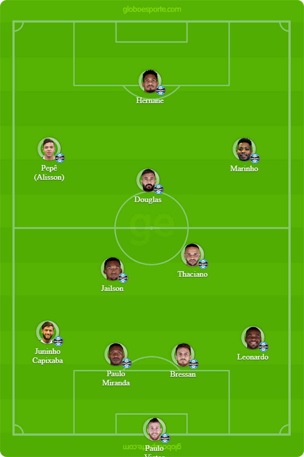 Enquanto o Grêmio estiver envolvido em fases decisivas na Copa do Brasil e Libertadores, Renato poupará jogadores no Brasileirão. Será assim neste sábado para o duelo contra o Flamengo. Chance para atletas como pouco ritmo, como Douglas, Marinho e Alisson, que deve entrar no decorrer da partida. Recuperado, Bressan volta a ficar disponível e entra na zaga.