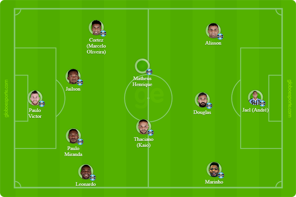 Provável Grêmio: Paulo Victor; Leonardo, Paulo Miranda, Jailson e Bruno Cortez (Marcelo Oliveira); Matheus Henrique, Thaciano (Kaio), Douglas, Alisson e Marinho; Jael (André).