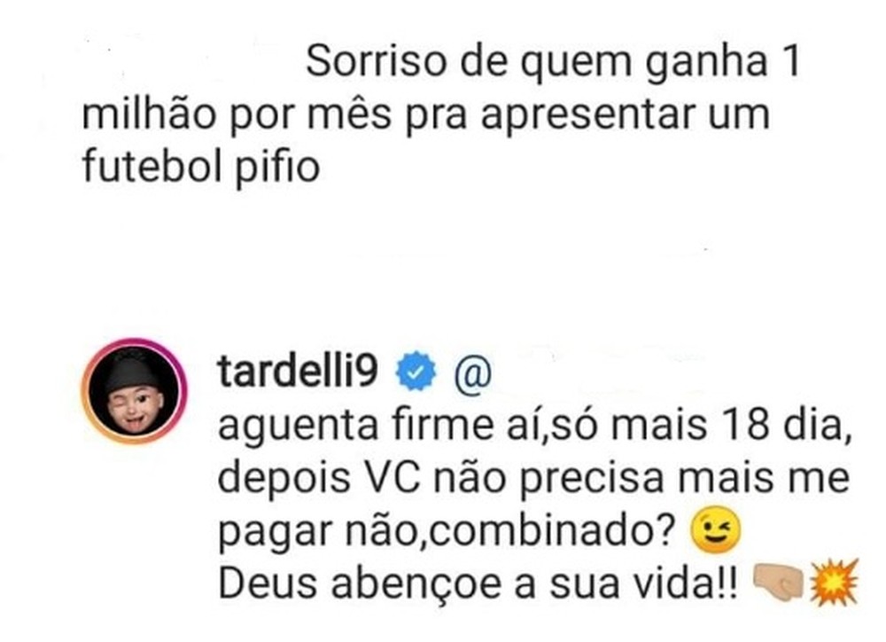 Logo depois da entrevista, o atacante se manifestou nas redes sociais e afirmou que permaneceria no clube. Um time chinês havia procurado Tardelli para retornar ao Oriente, e a possibilidade mexeu com a cabeça do atacante, incomodado com algumas práticas no futebol brasileiro.