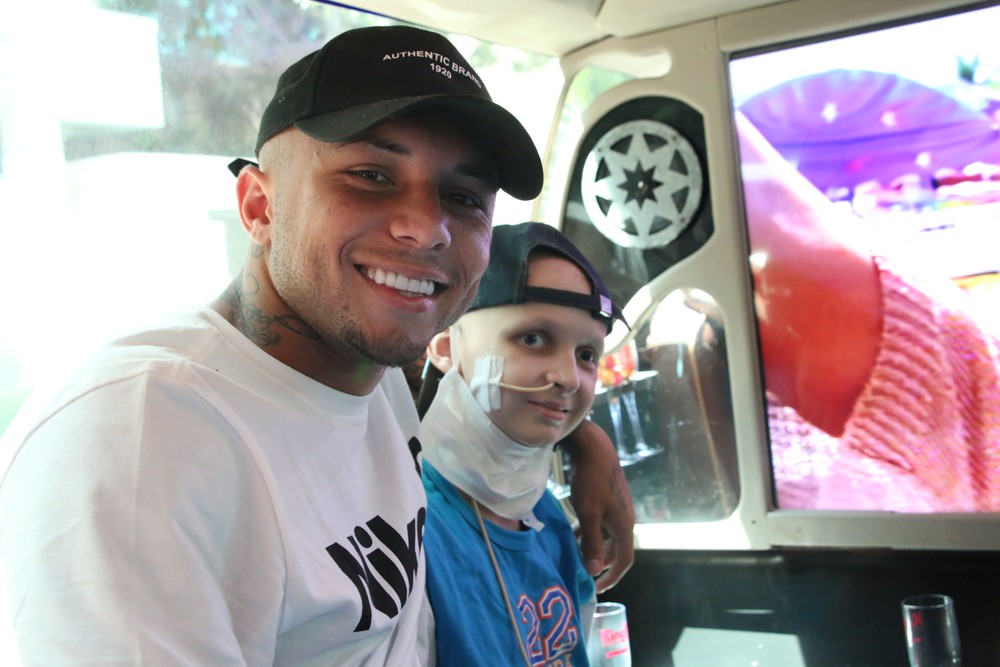 Foi a primeira vez que Everton em uma limusine. Mas o passeio não vai ficar marcado na memória do atacante por esse motivo. O jogador do Grêmio e da Seleção falou do sentimento de fazer parte da campanha com as crianças.