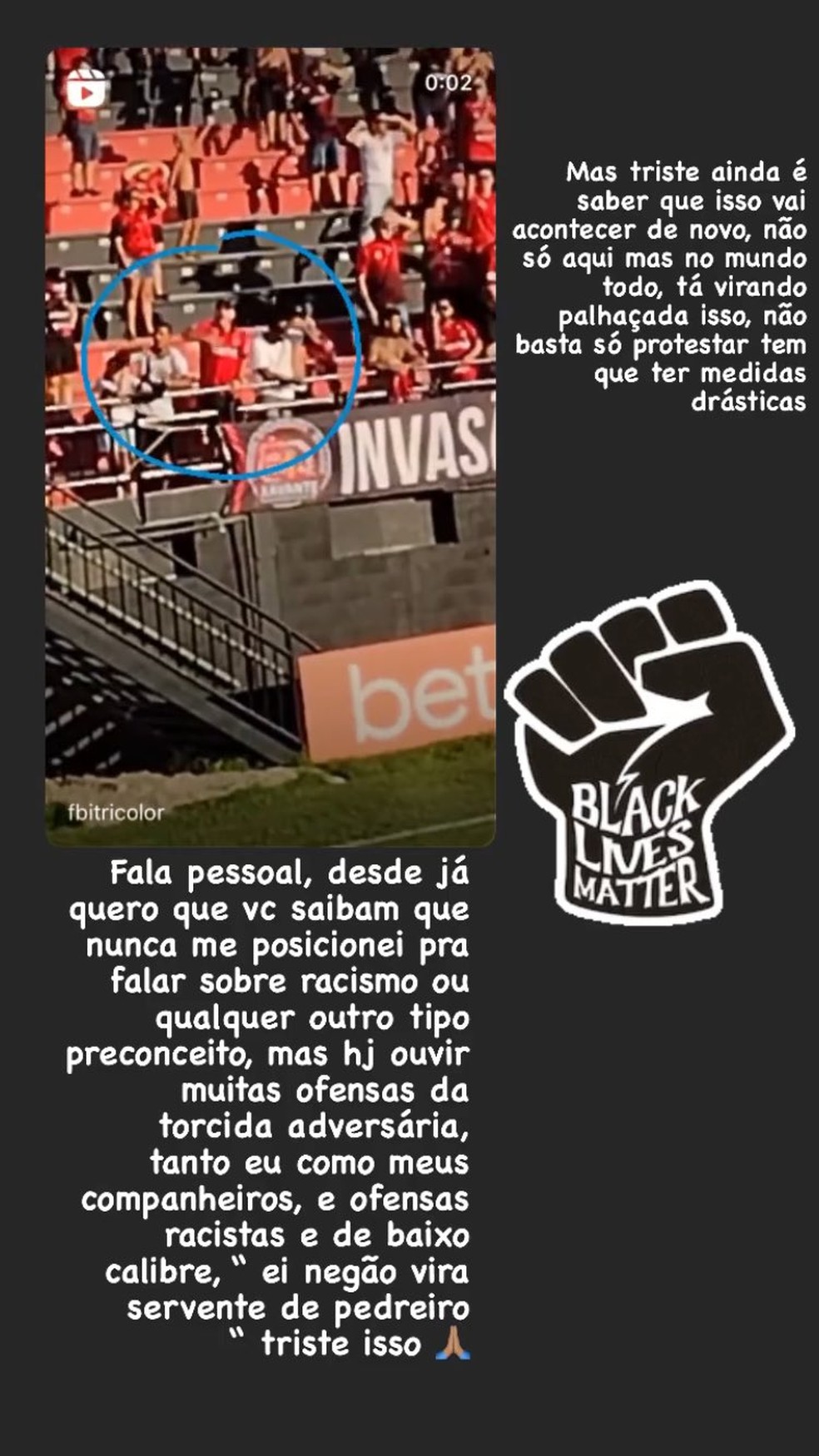 A denúncia foi feita em uma postagem no perfil do jogador no Instagram. O goleiro chegou a marcar um torcedor, que segundo ele teria sido responsável pelas ofensas. Um vídeo de um homem supostamente imitando gestos de um macaco circulou pelas redes sociais.