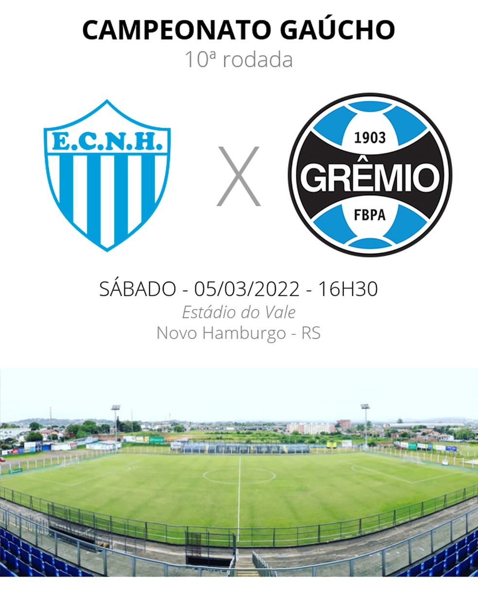 O Grêmio volta a jogar neste sábado, contra o Novo Hamburgo, no Estádio do Vale, às 16h30. O jogo é válido pela 10ª rodada do Campeonato Gaúcho.