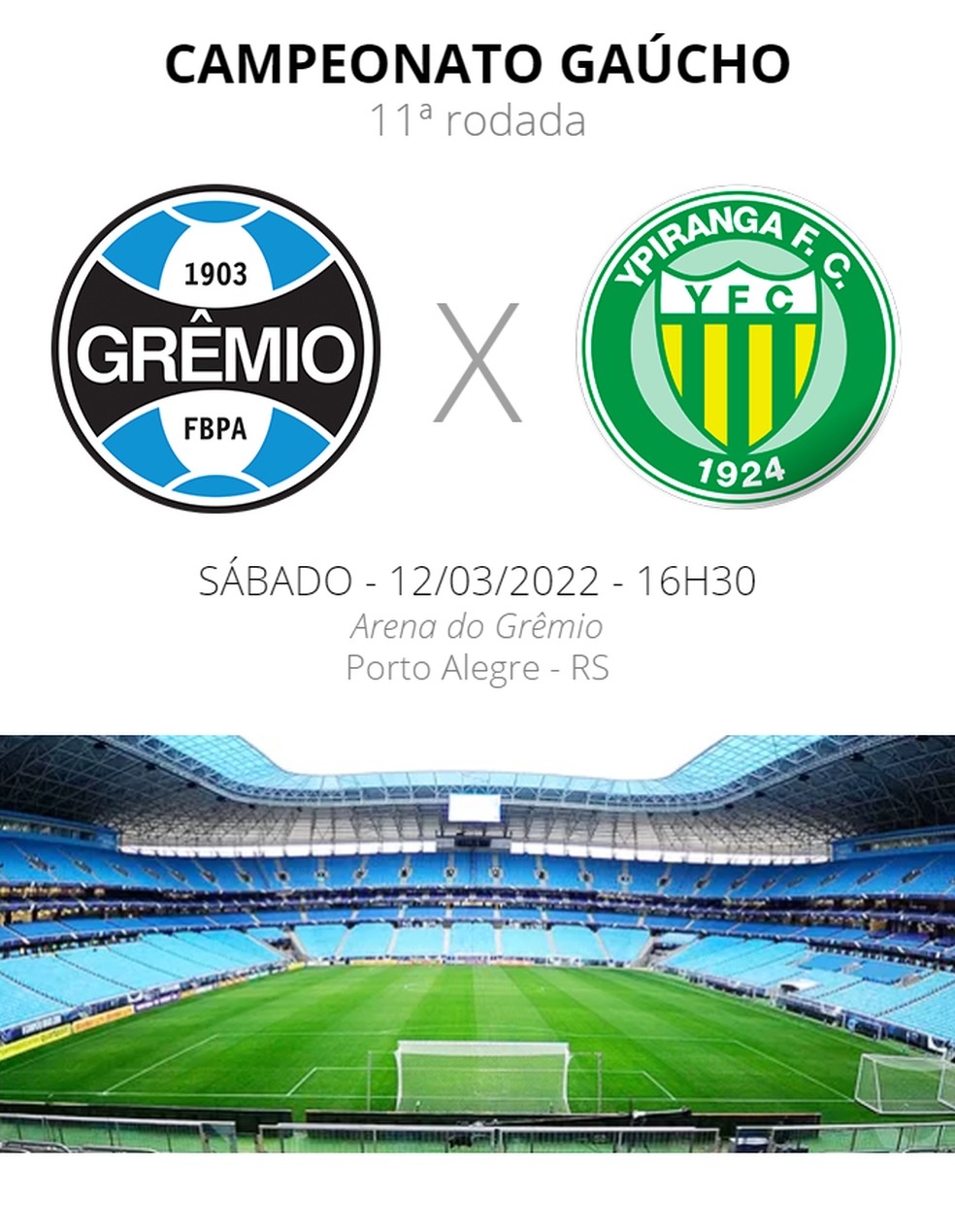 Grêmio e Ypiranga se enfrentam neste sábado pela 11ª e última rodada da primeira fase do Gauchão. A partida está marcada para s 16h30, na Arena, em Porto Alegre.