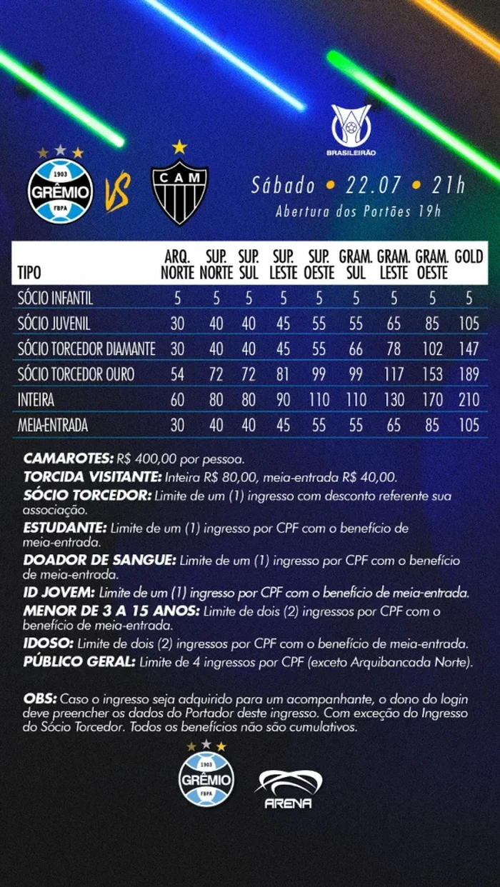 Ingressos para Grêmio x Atlético-MG