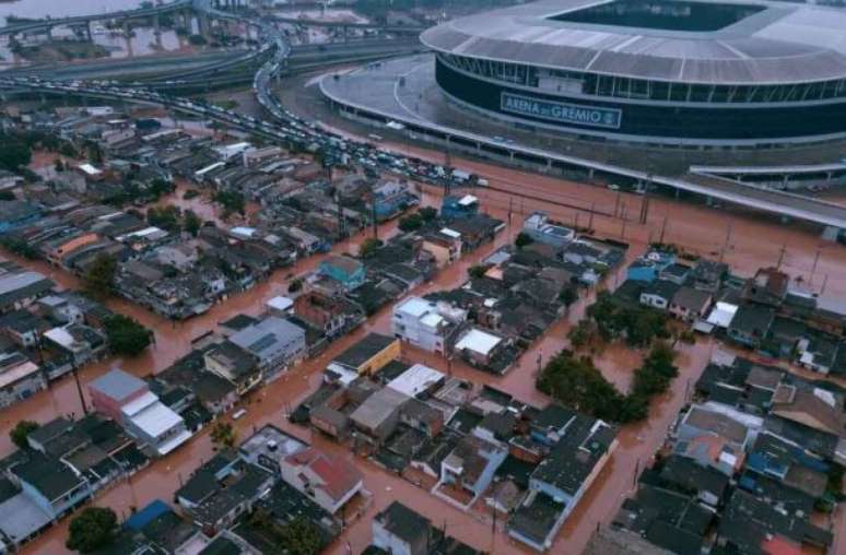 Foto: Reprodução / Radio GreNal - Legenda: Gramado da Arena do Grêmio completamente alagado / Jogada10 A Arena do Grêmio , casa do Imortal, estava sendo um ponto de abrigo temporário para as vítimas das enchentes que ocorrem no Rio Grande do Sul. Contudo, o estádio vai passar por desocupação devido à ausência de estrutura. Principalmente pela falta de água e luz. O local era refúgio para cerca de 500 pessoas, mas segundo a nota do clube, o cenário é caótico. "Devido à falta de estrutura adequada, incluindo a ausência de luz e água, a Brigada Militar será responsável por transferir os desabrigados para locais com infraestrutura completa", informou o Imortal. "O estádio, que se tornou um refúgio temporário para os necessitados, está agora sem condições de manter sua função de abrigo. Permanecerão na Arena apenas os seguranças", acrescentou no comunicado o Grêmio. ???????? ?????????????? A Arena do Grêmio, que serviu como ponto provisório de abrigo para mais de 500 pessoas afetadas pela enchente em Porto Alegre, enfrenta uma situação crítica. Segue 1/4 pic.twitter.com/PfZdxdjvpY — Arena do Grêmio (@todosnaarena) May 6, 2024 De acordo com a previsão do clube, a Brigada Militar deve levar as pessoas que estavam abrigadas na Arena para locais seguros na capital gaúcha ainda nesta segunda-feira (06). Vale ressaltar que devido às enchentes, a circulação em Porto Alegre é limitada, principalmente em pontos como o aeroporto, os CTs das equipes. Assim como os estádios Arena do Grêmio e Beira-Rio. Em parceria, CBF tenta ajudar as vítimas das enchentes A Confederação Brasileira de Futebol (CBF) vai inaugurar, nesta segunda (06), uma plataforma para ajudar as vítimas das enchentes no Rio Grande do Sul. Tal novidade é uma parceria com a empresa Imply, uma das principais companhias de bilheteria do país. A intenção da entidade é reunir a comunidade do futebol no país e auxiliar pessoas que sofrem com o incidente histórico no estado. Grêmio e Inter tiveram seus compromissos cancelados Devido às fortes chuvas que atingiram o estado, a partida da ida entre Inter e Juventude pela Copa do Brasil, que ocorreria na última quarta (01/05), foi adiada. Desse modo, o duelo que vai ocorrer no Beira-Rio foi reagendado para o dia 10 de maio. Posteriormente foi a vez da CBF cancelar os compromissos do Colorado, Grêmio e Juventude pelo Campeonato Brasileiro, que deveriam acontecer neste último final de semana. Além disso, a Conmebol decidiu que os confrontos do Tricolor Gaúcho e do Internacional pela Libertadores e Sul-Americana, respectivamente, que ocorreriam nesta semana, também foram cancelados.